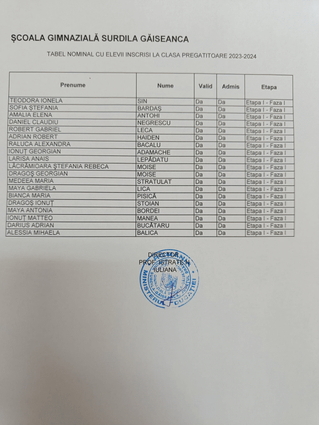 Situatie vaccinari Scoala Gimnaziala Surdila Gaiseanca