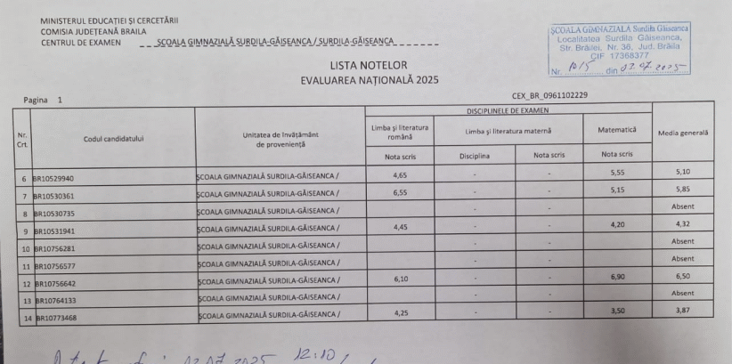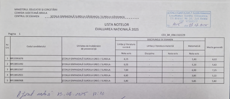 Situatie vaccinari Scoala Gimnaziala Surdila Gaiseanca